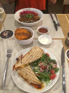 The menu had a mix of sandwiches served with side salad transforming them into a more substantial meal alongside heartier dishes such as mac and cheese and BBQ pulled pork. Three white, three red wines, three bottled beers and a prosecco choice made up the alcoholic options. Prosecco is only available by the bottle, slightly inconvenient and losing out on potential sales for solo customers; we reluctantly forced ourselves through a bottle, in the spirit of research of course.