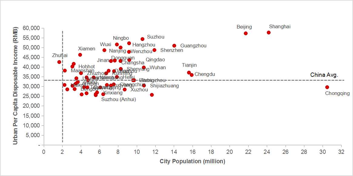 They’ve established a truly national coverage across China, from Urumqi to Shanghai, and Shenzhen to Harbin, all with relatively good population and affluence (Chart 1). Their early market entry allowed them to secure some strong locations in the high density urban areas, with a particularly strong network in cities like Shanghai (Chart 2).