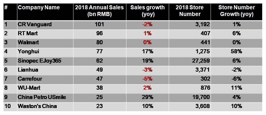 In sharp contrast, among the top 20 FMCG Retail Chains in China, two pioneers of “New Retail/ Smart Retail”- Hema Fresh and Yonghui have both witnessed sharp growth – with physical expansion a key component. In particular, Hema Fresh store numbers have grown fourfold %, sales having increased by 300%, and its ranking surged from #51 in 2017 to #18 in 2018.