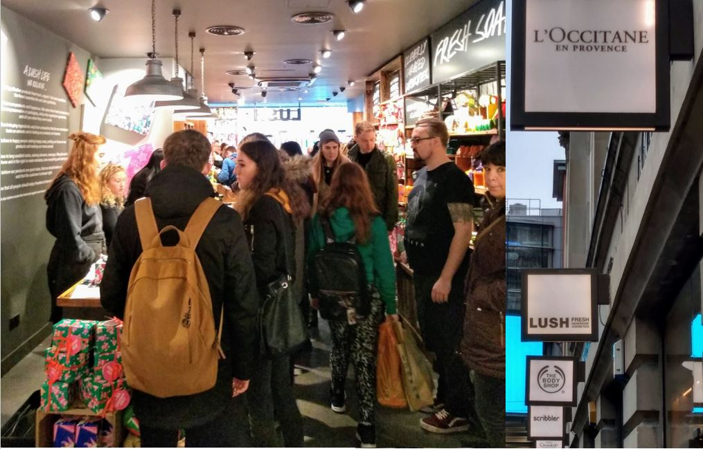 Since then, Lush has very much been on my radar. In December, on a trip to Manchester I visited the store on Market Street to find it bursting with customers. It’s sandwiched between The Body Shop and L’Occitane – both were empty, the difference being stark. Lush were doing something right. On my trips to Amsterdam and Dortmund it was the same story.