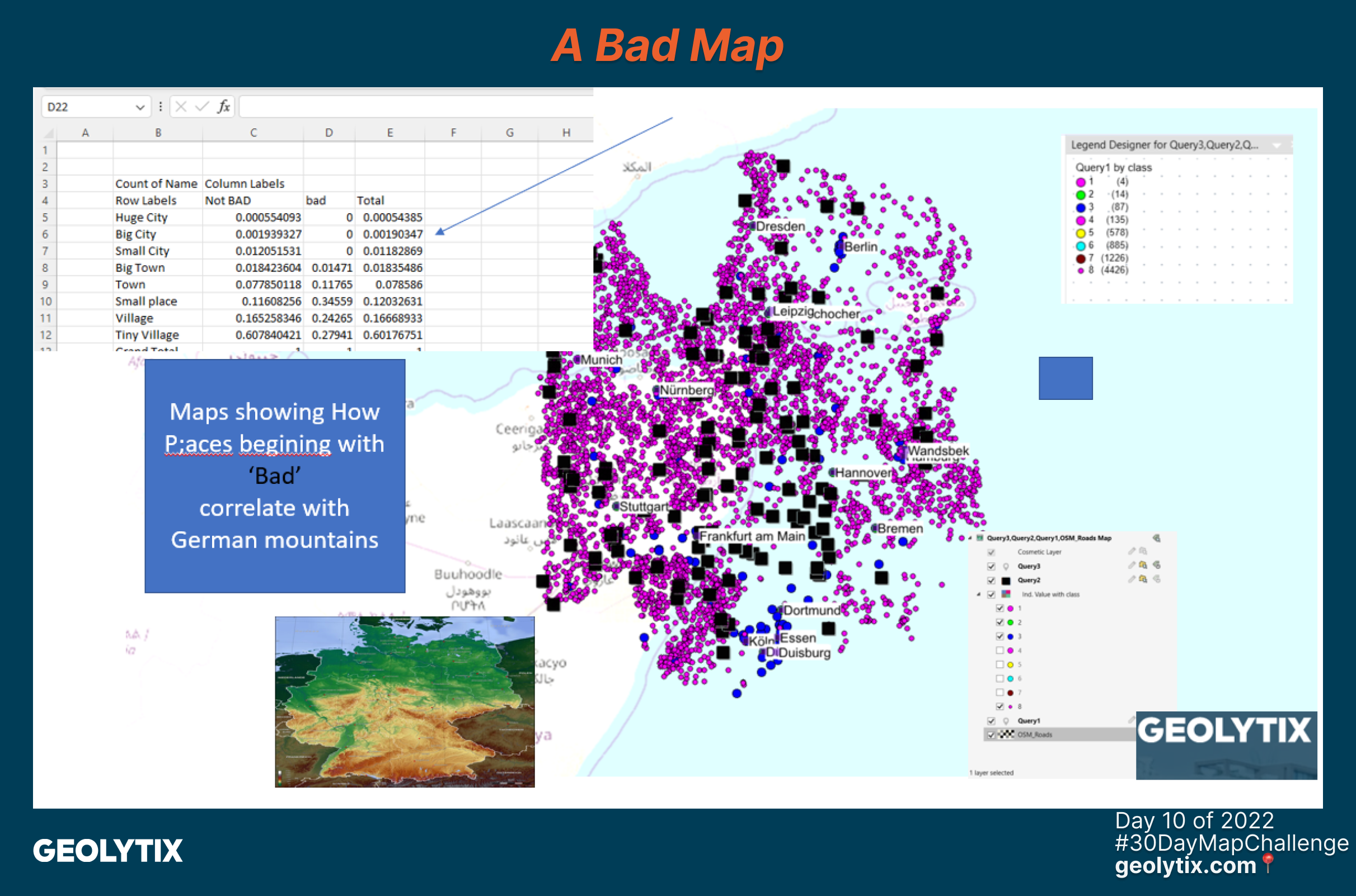 A bad Bad map showing places which begin with 'Bad' in Germany and how they correlate to German mountains