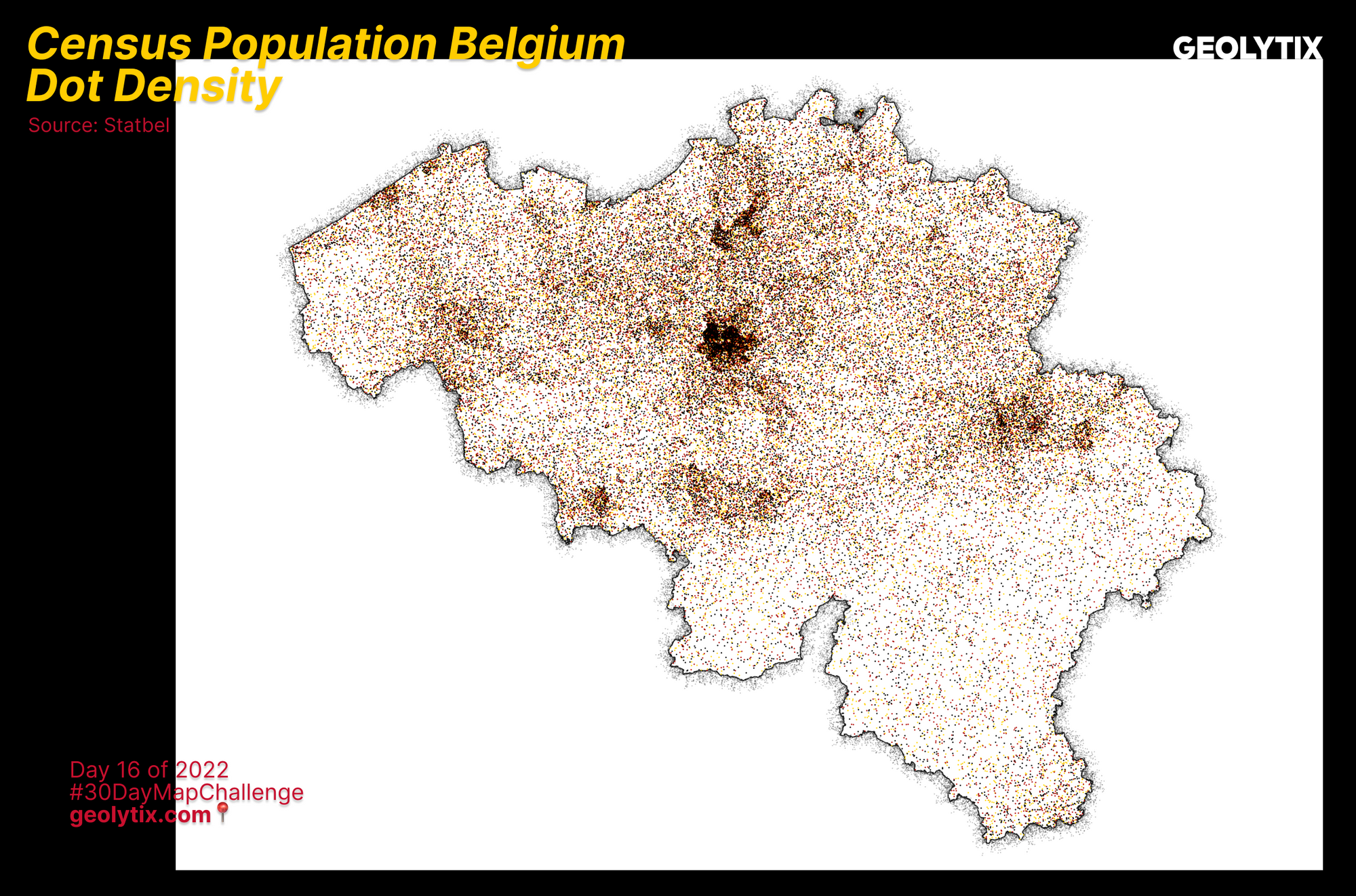 Chris turned the census population at Commune into random point distribution based on the value, then randomly colour with Belgian flag colours