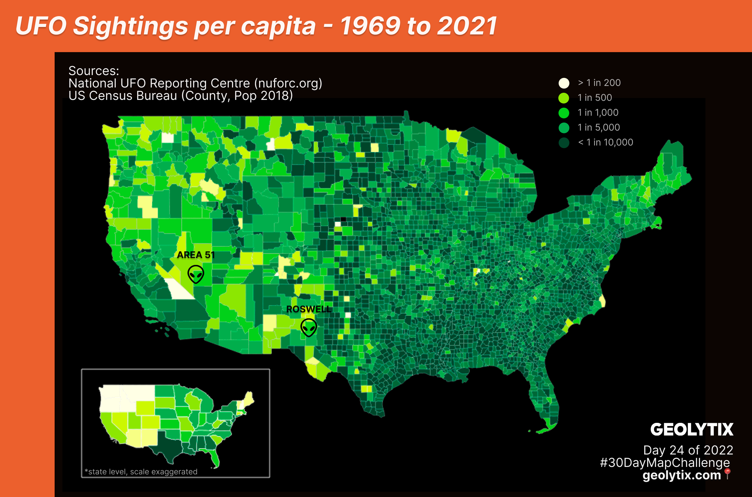 UFO Sightings per capita from 1969 to 2021 across the United States of America