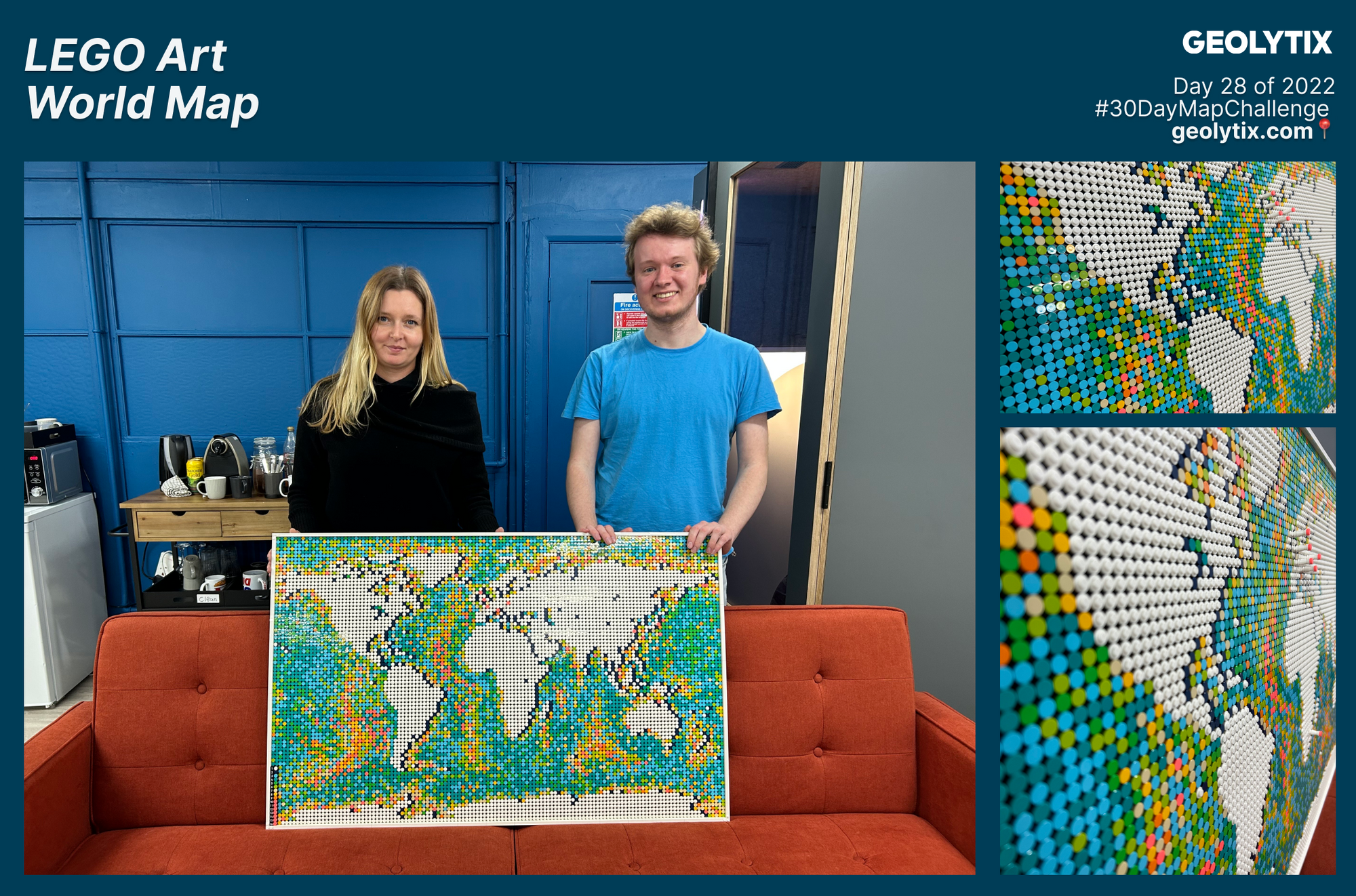 11,695 pieces, 16 hours over a month of Thursdays and voila... LEGO Art World Map built by Josh & Agata in our London office
