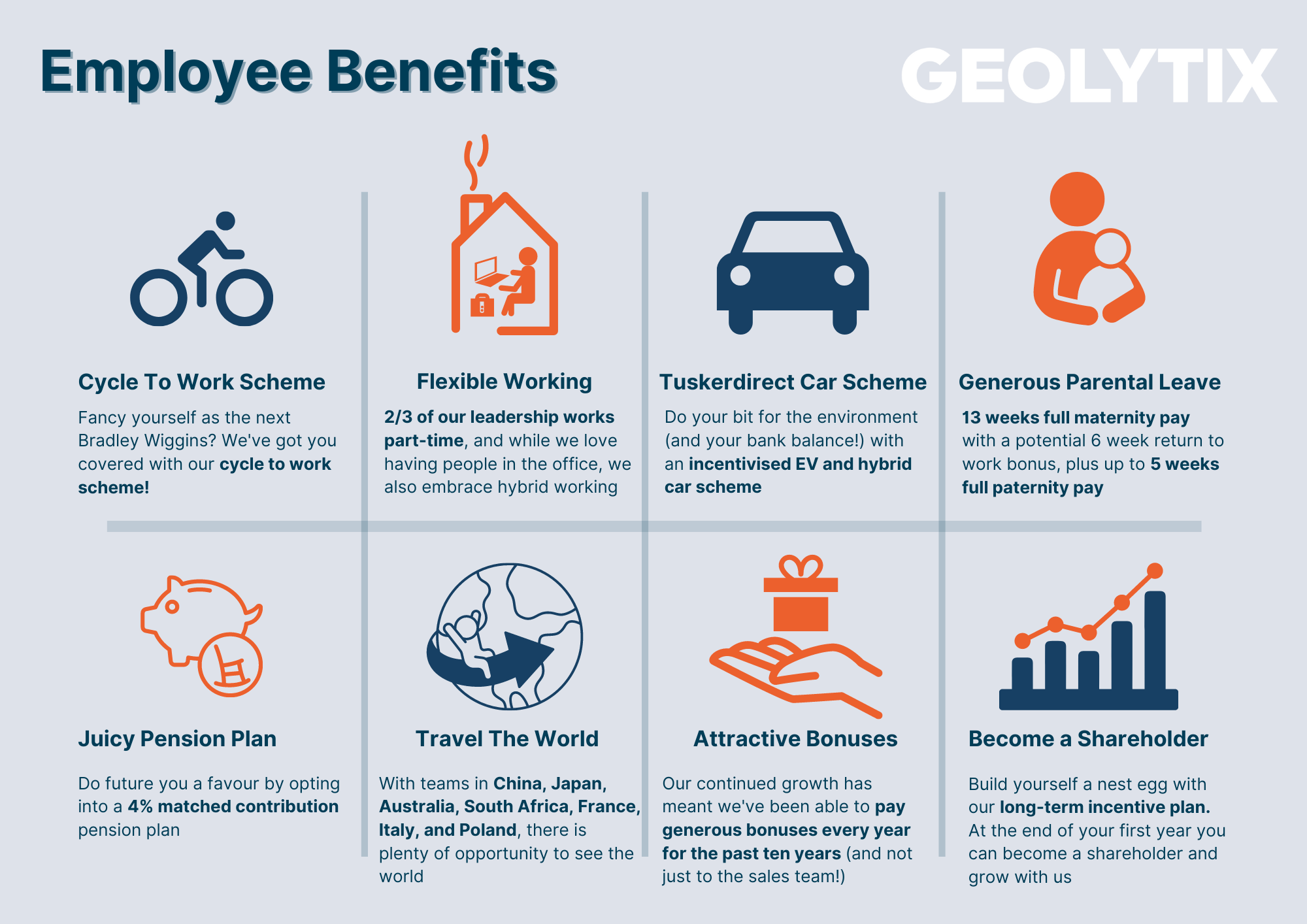 If working with an awesome team on interesting projects isn't quite enough, Geolytix employees benefit from lots of other perks too.