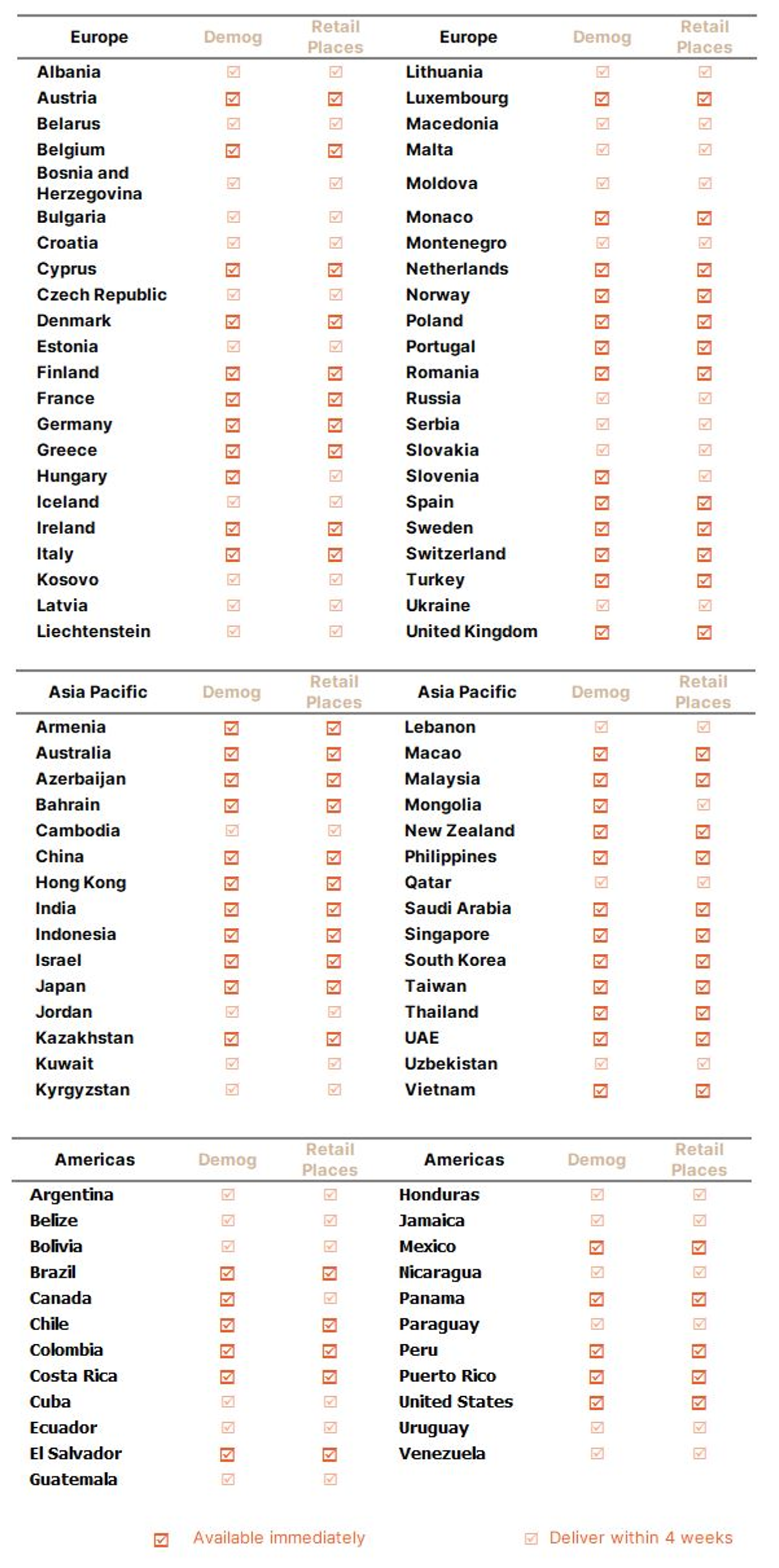 We offer Demographics and Retail Places for 55+ countries with consistent structure, comparable definitions, annual license with update and favourable license terms and unlimited users. If there is a country we don't have listed below please get in contact as we are continually growing our coverage.