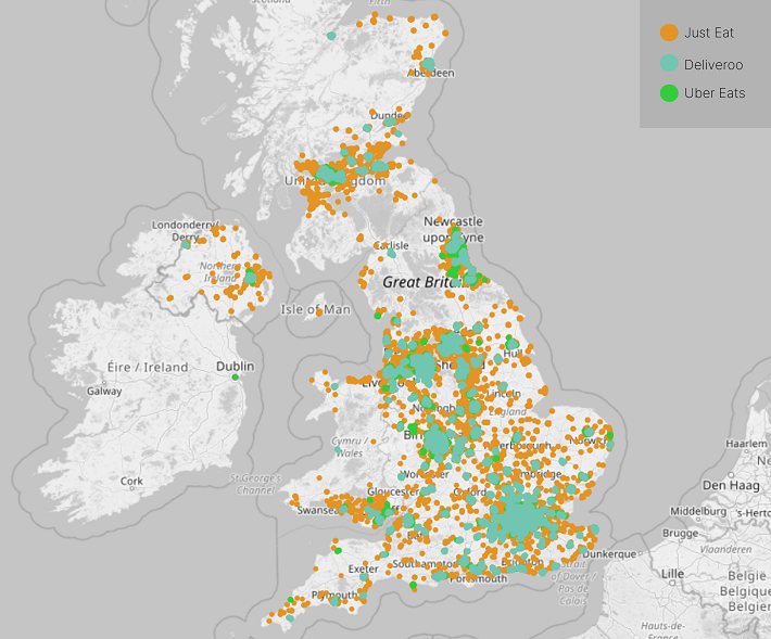 The analysis above is using our data from 2020. As these platforms have continued to grow over the past year, it is likely that the number of takeaway options on each has also grown.
